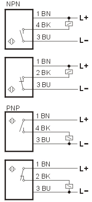 ◆ 体积小,适用于狭小空间◆ 具有浪涌,反极性保护功能◆ 外壳材料:黄铜镀镍◆ 防护等级IP66 | NPN NOIBD4-S0.8NA-D3N2 NPN NCIBD4-S0.8NB-D3N2 PNP NOIBD4-S0.8PA-D3N2 PNP NCIBD4-S0.8PB-D3N2 |